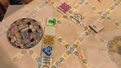 Nach dem Abendessen trafen wir uns, um kreativ zu werden, Fliesenmagnete bemalen, Bilder auf Transparentpapier ausmalen, Freundschaftsbänder flechten und die Arche aus Legosteinen bauen. Es war eine sehr entspannte Stimmung und das für fast 2 Stunden. Zum Abschluss gab es noch einen Film vom Superbuch, natürlich mit dem Thema Arche Noah.