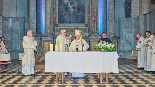 250 Jahre nach Gründung der ersten katholischen Gemeinde erinnert Propst Dr. Tobias Sarx daran, dass dieses Jubiläum eben auch bedeute, dass es genauso lang in Stralsund keinen katholischen Gottesdienst geben durfte. „Das tut mir leid, dafür bitte ich um Entschuldigung“, bekennt er freimütig und ist dankbar, dass eine lebendige Ökumene belegt, dass diese Zeiten endgültig vorüber seien. „Wir leben in unruhigen Zeiten, was uns verbindet ist der Glaube an Gott, der sich in Jesus Christus offenbart hat. Ich wünsche Ihnen, dass Sie immer neu zu diesem Fundament zurückfinden!“