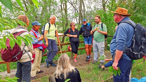 Auch im nachfolgende Abschnitt durch den Barther Stadtforst präsentierte sich Gottes Schöpfung in wunderbarer mannigfacher Form, begleitet von interessanten Ausführungen unser Schweizer Gäste und der aus Polen stammenden Naturführerin, mit der wir gemeinsam Baumperlen zu pflücken lernten. Eine sehr besondere Erfahrung. Sie erklärte uns auch wie Buche und Efeu in ihrem Zusammenleben fast eins werden und was wir uns davon abschauen können, auch vielleicht in Bezug auf unseren Glauben oder unsere Beziehungen.
