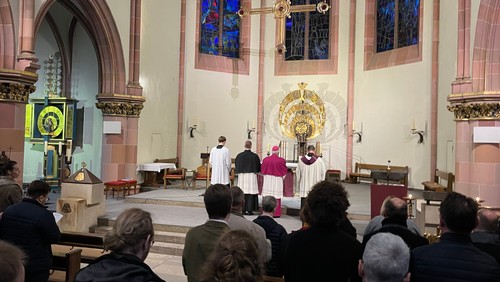 Erzbischof Koch ermutigte in seiner Predigt alle mit vier konkreten Ratschlägen. Das erste ist das Wollen. Gott zu begegnen und kennenzulernen ist immer wieder ein Akt des Willens. Dann bedeutet es zweitens, sich auf den Weg zu machen. Das kann mitunter schwer sein, vor allem dann, wenn die Umstände schwierig oder sogar dagegen sprechen. Es sei wichtig, nicht locker zu lassen, betonte er. Vielen Heiligen ist es so ergangen. Dann ist drittens die Gemeinschaft wichtig. Keiner glaubt allein, wir brauchen die anderen. „Du siehst was, was ich nicht seh, und ich seh etwas, was du nicht siehst.“ Das vierte und letzte worauf der Erzbischof hinwies, war das Gebet, denn Glaube ist immer auch Geschenk. Er nimmt alle Taufbewerber und Neugetauften übers Jahr hinweg mit in sein Gebet, versicherte der Bischof. Dann segnete er jeden einzelnen zur Stärkung auf diesem unmittelbaren Weg zur Taufe oder Konversion.