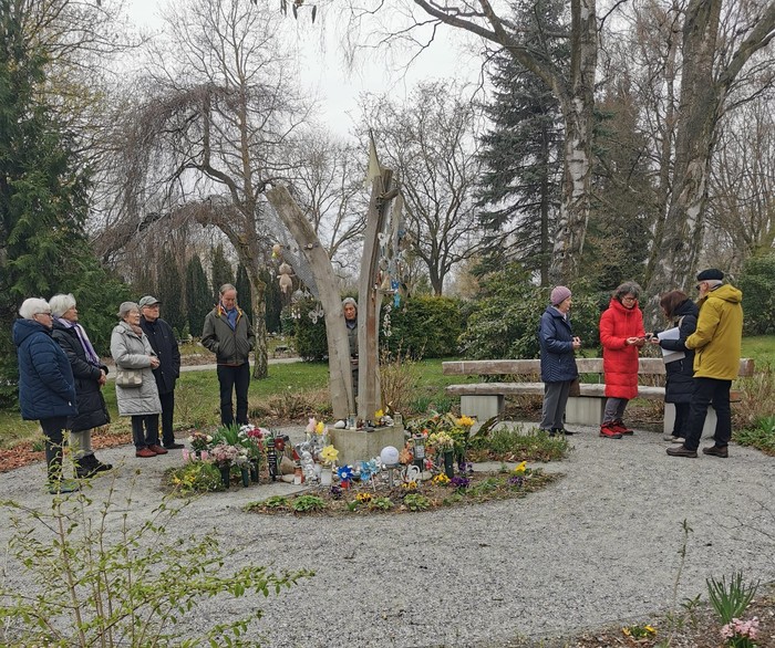 So machten sich am Sonntag, den 12.04.2026 auf dem Zentralfriedhof 11 Leute auf „to go- Emmaus“ Weg. Genau die Apostelzahl, denn Judas fehlte schon! In der Stille und leisem Gespräch war Jeder, Jedem Begleiter.