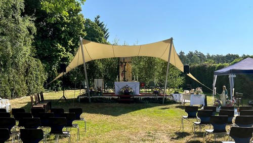 Am Donnerstag, 19.06.2025, feiert die Kirche das Hochfest des Leibes und Blutes Jesu Christi. In diesem Jahr wird die traditionelle Fronleichnamsprozession in Vorpommern in Hoppenwalde stattfinden. Um 10:00 Uhr beginnt die Hl. Messe mit Erzbischof Dr. Heiner Koch. Anschließend wird das Allerheiligste Sakrament in feierlicher Prozession durch die Straßen getragen und mit Gebet und Gesang um den Segen für Menschen und Land gebeten. Dann sind alle zum Mittagessen und Beisammensein eingeladen.