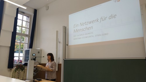 "Ich konnte dort den Mitarbeitenden von Caritas und Generalvikariat und aus den Pastoralen Räumen unsere Arbeit in und mit den Lazarusdiensten in einem Vortrag und in einem Workshop vorstellen und stand als Gesprächspartnerin zur Verfügung.