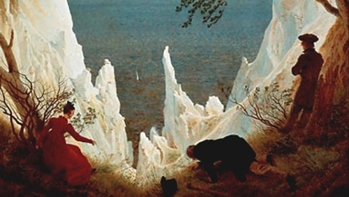 Ich habe Ihnen ein Bild mitgebracht im kleinen Format, das uns einen tiefen Einblick in die Beziehung zwischen Mensch, Natur und dem Göttlichen gewährt: Caspar David Friedrichs „Kreidefelsen auf Rügen“:
