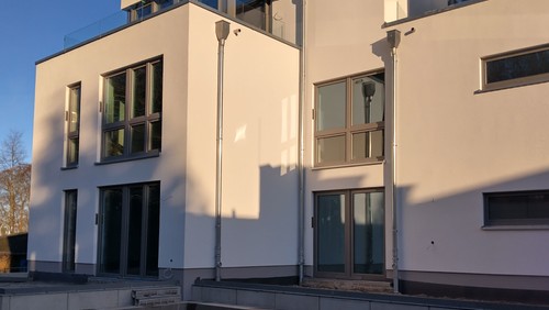 Ein weiterer Rückschlag erfolgte im letzten Sommer. Der Außenputz war fertig gestellt und die Estricharbeiten im Keller waren fast fertig. Bei einem Starkregen lief der Keller voll Wasser. Der Estrich und die Dämmung mussten wieder ausgebaut werden, der Trockenbau im ganzen Haus wegen Schimmelbildung entfernt werden und Heizleitungen im Keller abisoliert und behandelt werden. Dann folgte die lange Phase der Trocknung. Als der Bau nach Freigabe dann endlich weitergehen konnte, begann dies dann schleppend. Die Firmen hatten neue Aufträge und konnten nicht gleich wieder in das Baugeschehen eintreten. Eine Firma hätte erst Anfang März die Arbeiten ausführen können. In Absprache mit dieser Firma haben wir eine andere Firma gebunden. Dies kostet aber immer Zeit, da neue Angebote eingeholt werden müssen und eine Auftragsvergabe erfolgen muss. Die neue Firma hat letzte Woche die Arbeiten begonnen. Die Gewerke Elektro, Malerarbeiten, Fliesenarbeiten und Trockenbau sind derzeit im Gebäude tätig. Die Fotovoltaikanlage ist angeschlossen. Bei den Außenanlagen sind die Versorgungsleitungen verlegt. Momentan werden die Tragschichten eingebracht, so dass bei guter Witterung die Pflasterarbeiten beginnen können.